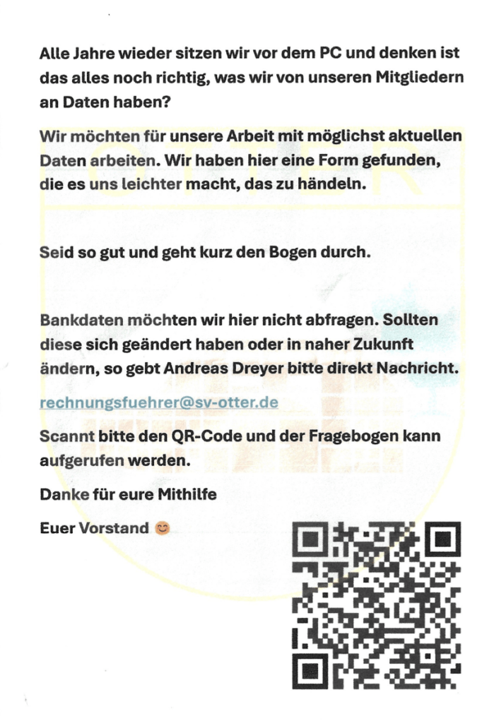 Der Schützenverein Otter e.V. lädt seine Mitglieder zudem zur diesjährigen Generalversammlung am 27. Februar 2026 in das Schützenhaus Otter ein. Beginn ist um 20.00 Uhr. Auf der Tagesordnung stehen erneut interessante Themen; die vollständige Tagesordnung ist unter www.sv-otter.de einzusehen.