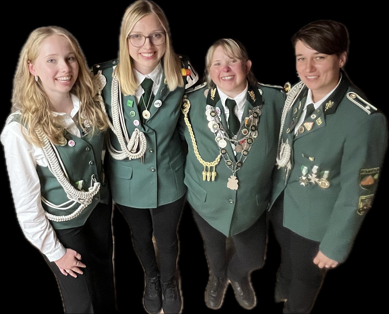 Lea Heins (2. von rechts) wird mit íhren Adjutantinnen Marie Lünsmann (links), Carina Matthies und Jasmin Lüdemann (rechts) das kommende Jahr den Schützenverein Otter repräsentieren.